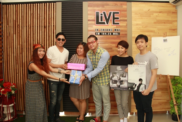 บรรยากาศการสัมภาษณ์สดศิลปิน Slot Machine เมื่อวันที่ 22 พฤษภาคม 2557 พร้อมฝากซิงเกิ้ลใหม่ "มีคนคิดถึงเธอ" ที่สตูดิโอ Live in Chian...