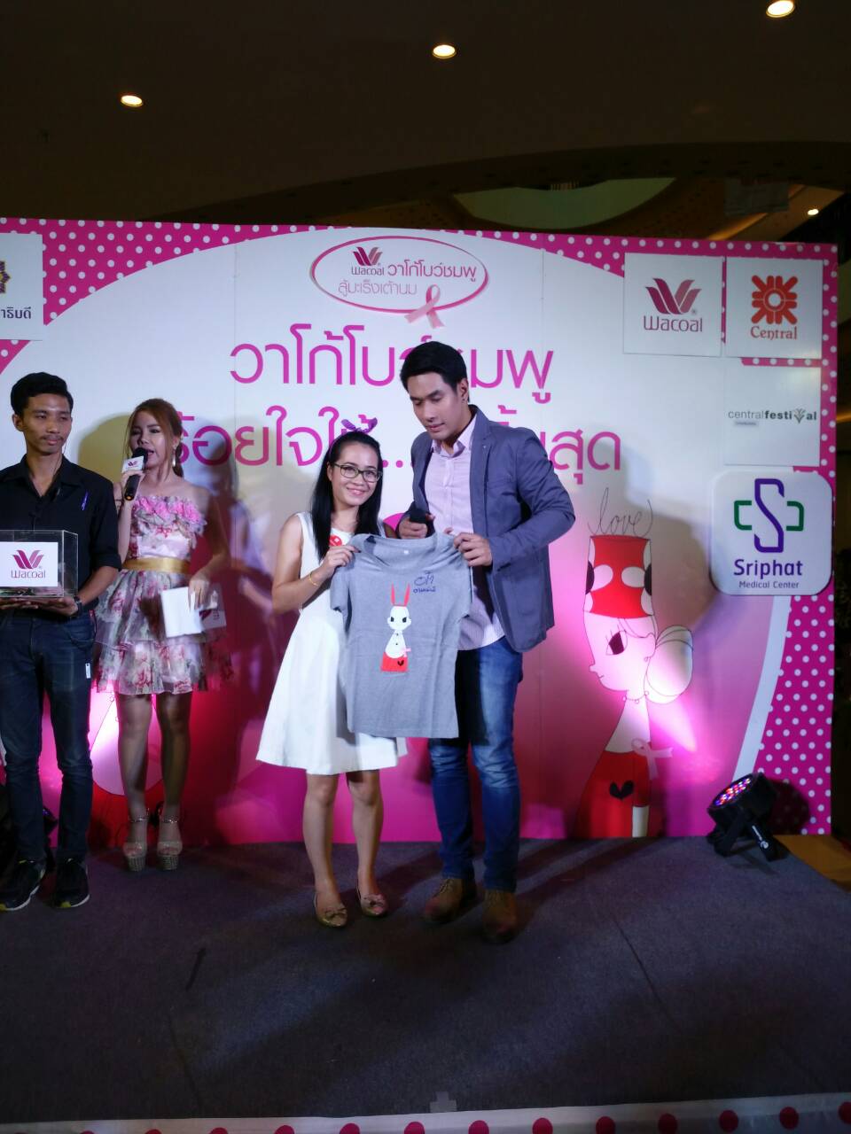 เมื่อวันเสาร์ ที่ 10 ต.ค.ที่ผ่านมา ผลิตภัณฑ์ชุดชั้นใน "วาโก้" ร่วมกับเซ็นทรัลเฟสติวัล เชียงใหม่ จัดงาน "วาโก้โบว์ชมพู ร้อยใจให้… ไม่สิ้นสุด" Beauty Inside เพื่อรณรงค์ให้ผู้หญิงไทยตระหนักถึงภัยมะเร็งเต้านม พร้อมเชิญร่วมกิจกรรมทำบุญซื้อของที่ระลึก หารายได้สมทบทุนมูลนิธิรามาธิบดี เพื่อช่วยเหลือผู้ป่วยมะเร็งเต้านมยากไร้ พร้อมช้อปสินค้าผลิตภัณฑ์ชุดชั้นในวาโก้ ลดสูงสุดถึง 70 % และร่วมตรวจสุขภาพเบื้องต้นโดยทีมคณะแพทย์ จากศูนย์ศรีพัฒน์ คณะแพทยศาสตร์ มช. โดยได้รับเกียรติจาก ผศ.พญ.ไพลิน คงมีผล แพทย์จากโรงพยาบาลมหาราชนครเชียงใหม่ มาร่วมพูดคุยกับเรื่องการดูแลสุขภาพให้ห่างไกลจากภัยมะเร็งเต้านม พร้อมทั้งศิลปินหนุ่ม "อ๋อม อรรคพันธ์" ที่มาสร้างความสนุกสนานให้ผู้เข้าร่วมงานและแฟนคลับ อีกทั้งได้มีการจำหน่าย wacoal Pink Ribbon Souvenir ภายในงานเพื่อนำเงินสมทบทุนช่วยเหลือผู้ป่วยมะเร็งเต้านมที่ยากไร้ ภายในงานคุณธมลวรรณ สารกาศ ผู้จัดการแผนกชุดชั้นในวาโก้ บริษัท ไอ.ซี.ซี อินเตอร์เนชั่นแนล จำกัด (มหาชน) ได้มอบชุดชั้นใน จำนวน 100 ชุด มูลค่ากว่า 155,000 บาท เพื่อมอบให้กับผู้ป่วยมะเร็งเต้านม อีกด้วย