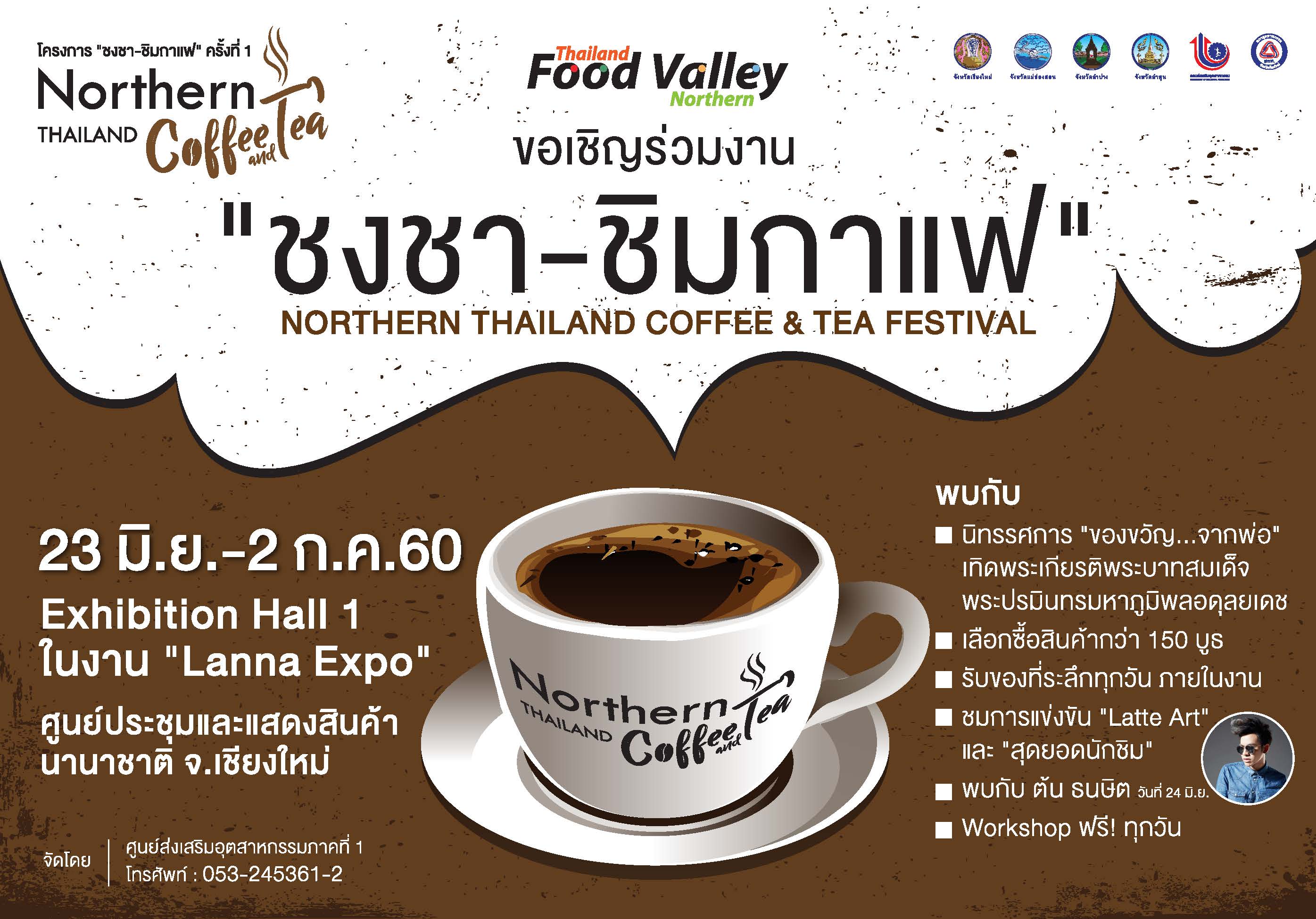 จังหวัดเชียงใหม่ โดยศูนย์ส่งเสริมอุตสาหกรรมภาคที่ 1 ขอเชิญร่วมงาน "ชงชา ชิมกาแฟ ครั้งที่ 1" ระหว่างวันที่ 23 มิ.ย. - 2 ก.ค.60 ในงา...